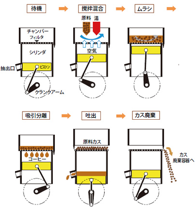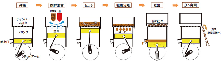 カップステーションスライド方式採用により、コーヒーカスの廃棄が簡単になりました。