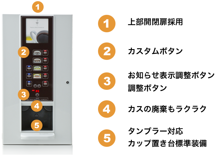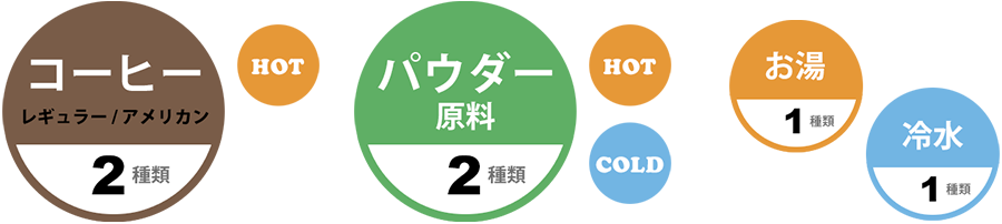 3つの調整ボタンで、味の濃さや量、温度を調整できます。