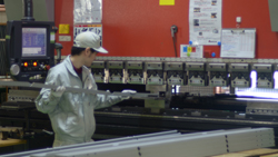 ターレットパンチプレスで打ち抜いた製品の曲げ加工を行います。
