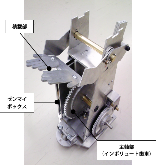 電動ノコの動力を利用した三輪車です。レーザ加工で減速用のギヤを加工し、それを組合せることにより、子供が乗っても安全な速度まで落としています。