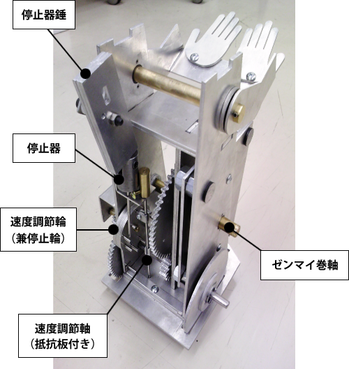 ゼンマイ仕掛けで動く"からくり茶運び人形"です。(速度調節・発進・停止が可能)
